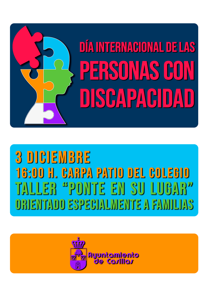 Día mundial de las personas con discapacidad- Taller «Ponte en su lugar» (Miércoles – 3 de diciembre) Publicación cartel informativo de la actividad organizada con motivo del día mundial de las personas con discapacidad, para el día 3 de diciembre.