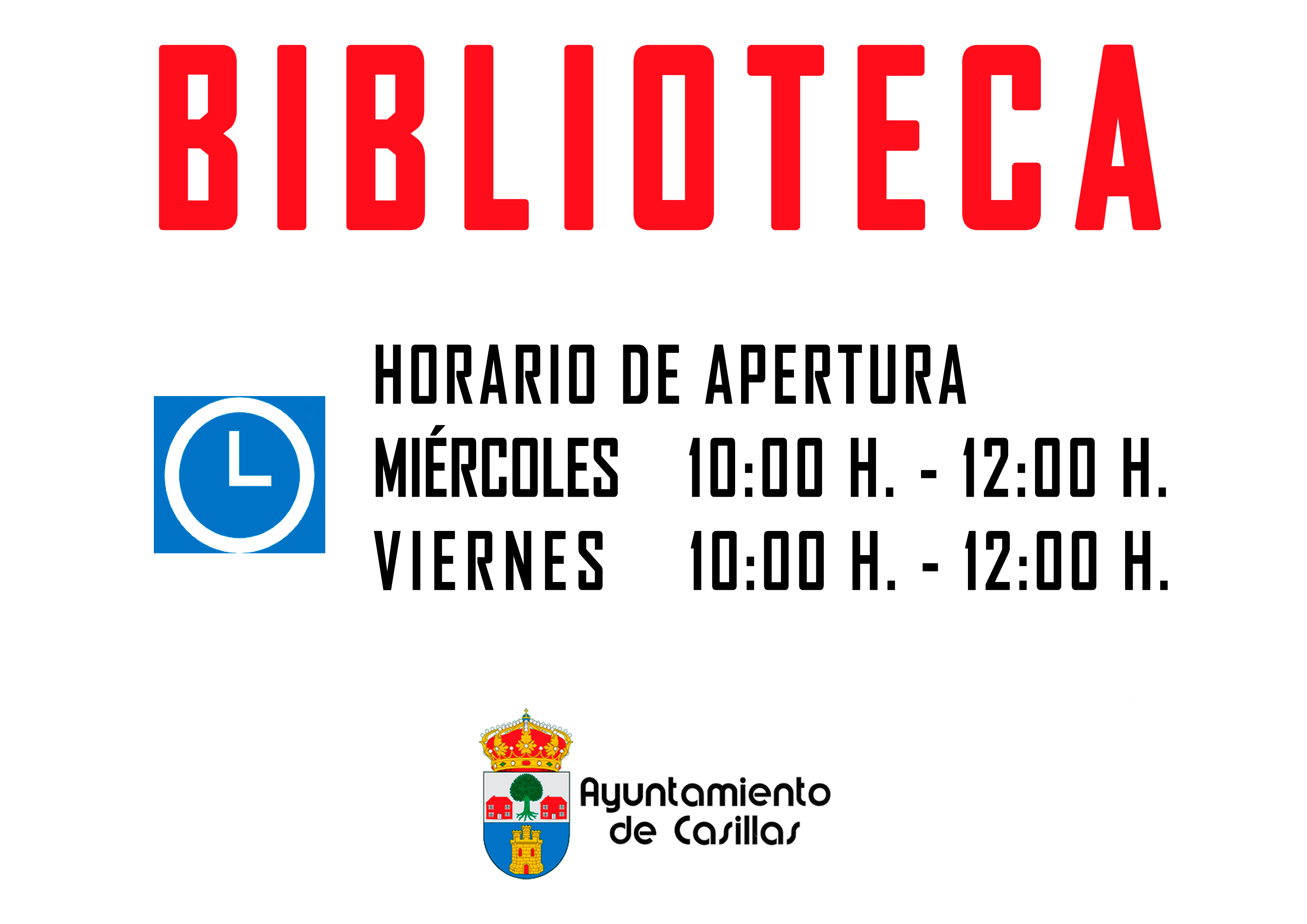 Publicación del cartel informativo relativo al horario de apertura de la biblioteca municipal.
