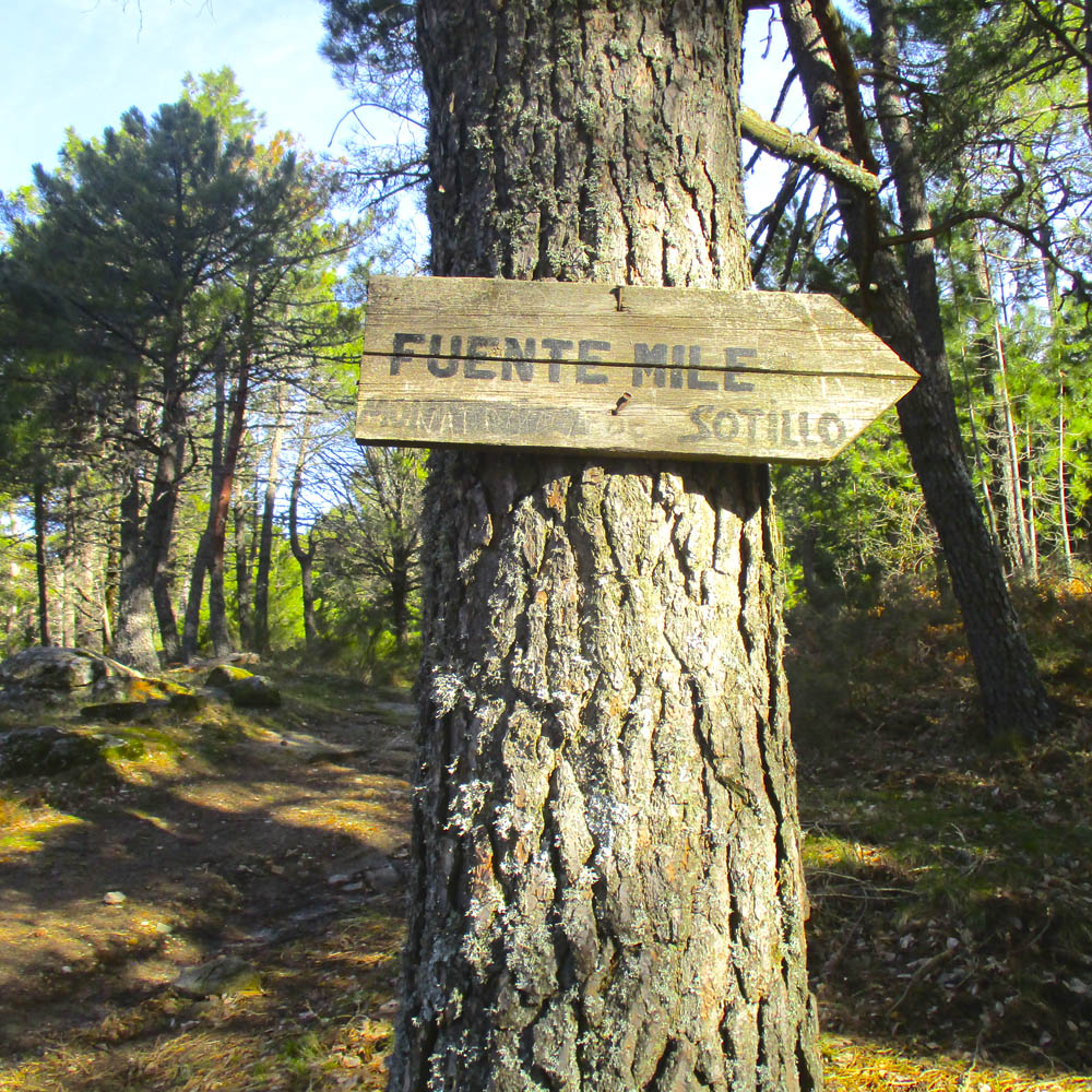 A partir de la garganta, el paisaje cambia rápidamente, transformándose en un paseo entre pinos, con fuertes pendientes, y de vez en cuando, zonas llanas que nos permitirán tomar un descanso. Tras un fuerte ascenso y dejando un camino a nuestra izquierda, llegamos a una zona más llana, momento en el que tomaremos a nuestra derecha un camino que asciende bruscamente por la ladera. Tras un fuerte ascenso en zig-zag, llegaremos posteriormente a zonas más llanas, encontrándonos en primer lugar una antigua construcción recientemente rehabilitada, y unos metros más adelante bajo la sombra de los pinos nos encontramos con la Fuente Miles, un lugar idóneo para descansar y reponer fuerzas antes de seguir con nuestro camino.