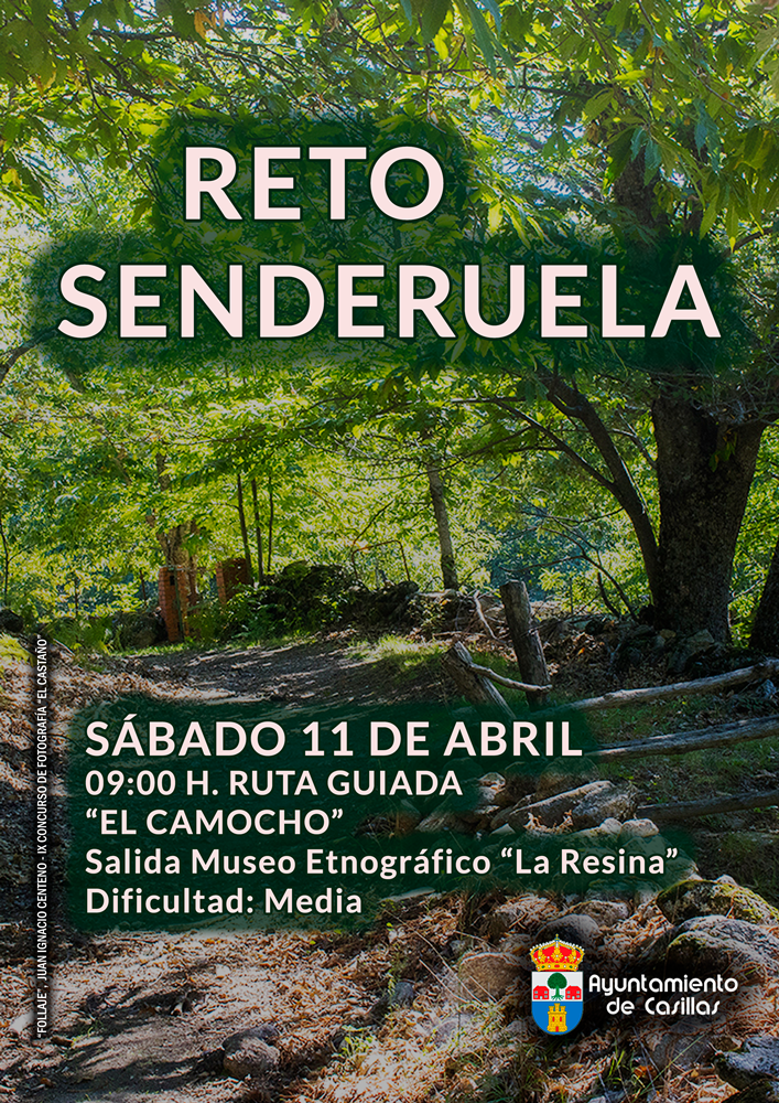 Publicación del cartel informativo sobre ruta guiada Reto Senderuela «El Camocho», que se realizará el próximo día 11 de abril. Salida desde el Museo Etnográfico «La Resina».