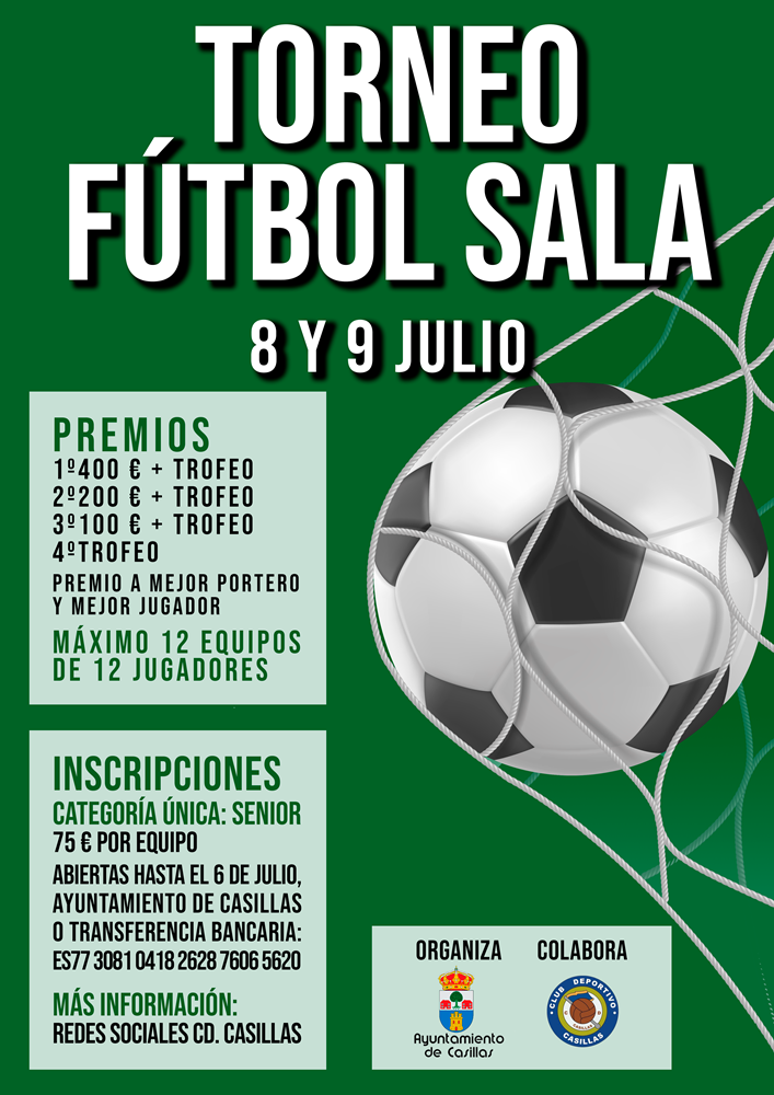 Publicación del cartel informativo sobre la realización de un torneo de Fútbol Sala para los días 20 y 21 de agosto.