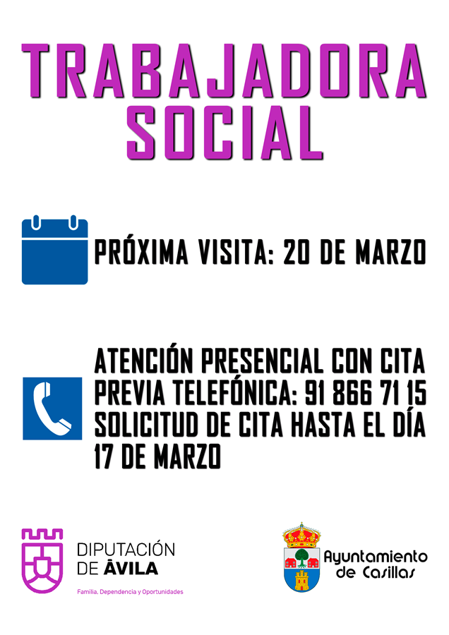 Visita Trabajadora Social (Lunes- 20 de marzo) Publicación del cartel informativo sobre visita de la Trabajadora Social para el próximo día 20 de marzo y del sistema de cita previa.