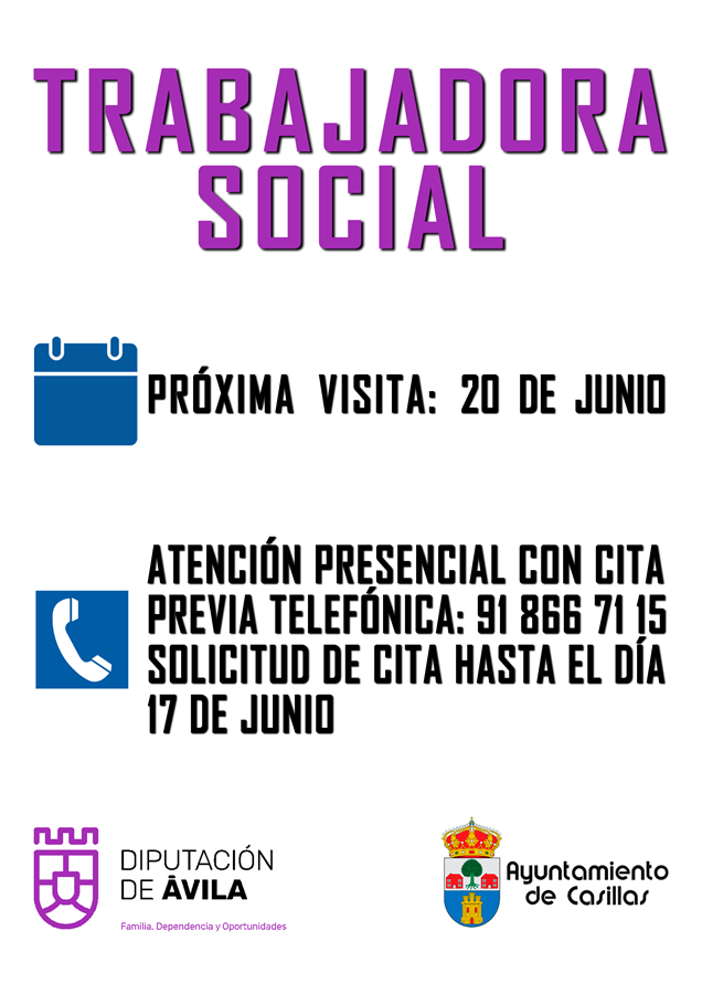 Visita Trabajadora Social (Lunes – 20 de junio) Publicación del cartel informativo sobre visita de la Trabajadora Social para el próximo día 20 de junio y del sistema de cita previa.